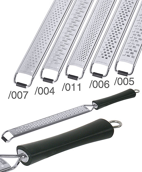 hardened 18/10 stainless steel, 22 x 3.5 cm blade, 18 cm black polyamide handle, hanging loop, support to keep the blade off work surface, high quality, dishwasher safe