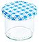 with plastic sealed steel screw cap, mixed blue and red gingham, lids are not dishwasher safe