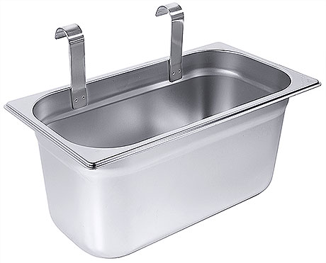 18/10 stainless steel, GN 1/3 size, with two hooks to be fixed on trolleys
