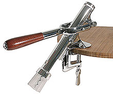 chrome plated cast zinc alloy with wooden handle, safety collar and clamp, heavy duty, for work surfaces up to 4.5 cm thick