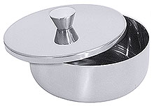 18/10 stainless steel, mirror polished finish, with hinged lid, notched for two spoons, heavy gauge